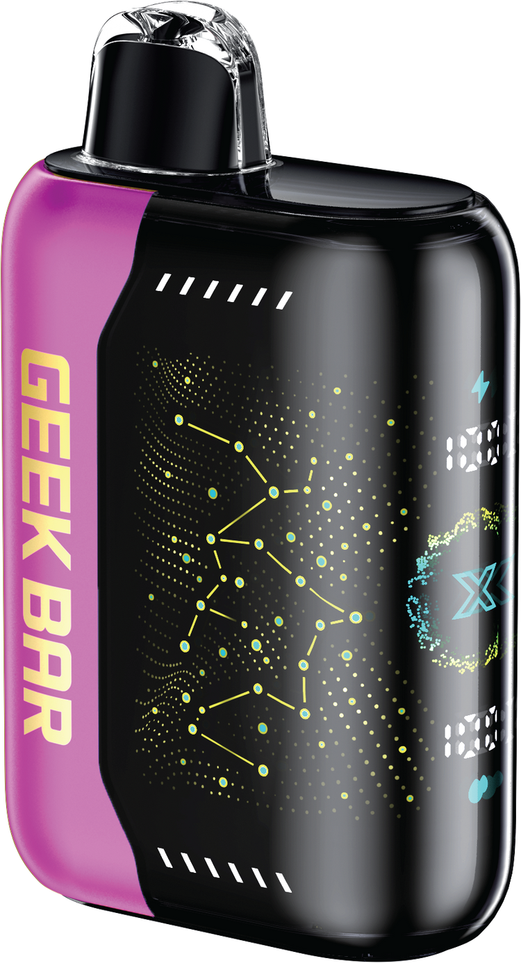 Discover the GEEK BAR PULSE X DISPOSABLE, a game-changing vape with a massive 20ML e-liquid capacity, delivering up to 25,000 puffs in regular mode and up to 15,000 puffs with Pulse Mode activated for an intense flavour and hit! This visually stunning device features the world's first 3D curved screen and vibrant LED lighting, displaying e-liquid and battery charge levels for ultimate convenience.